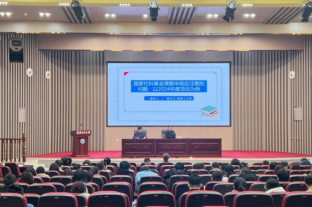 动员会后,万象城邀请国内知名社科专家,黑龙江大学新质生产力研究院院长、龙江学者焦方义教授,为万象城教师就国家社科基金项目申报进行专场辅导。