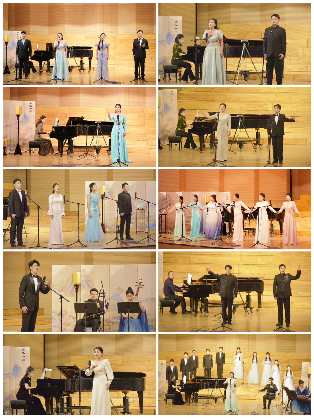 《锦瑟》《更漏子·玉炉香》《虞美人·春花秋月何时了》《破阵子·为陈同甫赴壮词以寄之》《越人歌》《青玉案·元夕》《山之高》《江畔独步寻花》《念奴娇·赤壁怀古》《葬花吟》《秋风词》《蝶恋花·槛菊愁烟兰泣露》,一首首大家耳熟能详的古诗词作品配上一段段优美动听的旋律,以独唱、重唱、合唱的形式相继在音乐厅里徐徐上演,古与今、诗与歌、音与画和谐交融,令观众们在古诗词与音乐交相辉映的意境之中陶醉不已。