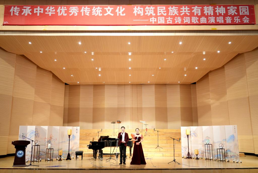 “吟唱经典 和诗以歌”,为丰富校园文化建设,在传承中华优秀传统文化中构筑民族共有精神家园,铸牢学生中华民族共同体意识,12月16日晚18:30,学校举办了“中国古诗词歌曲演唱音乐会”。校领导丁宏、齐宏伟、张文治、张树军和黑龙江省古诗词歌曲研究专委会主任韩峰亲临现场观摩指导,相关职能部处教师和学生代表参加了音乐会。