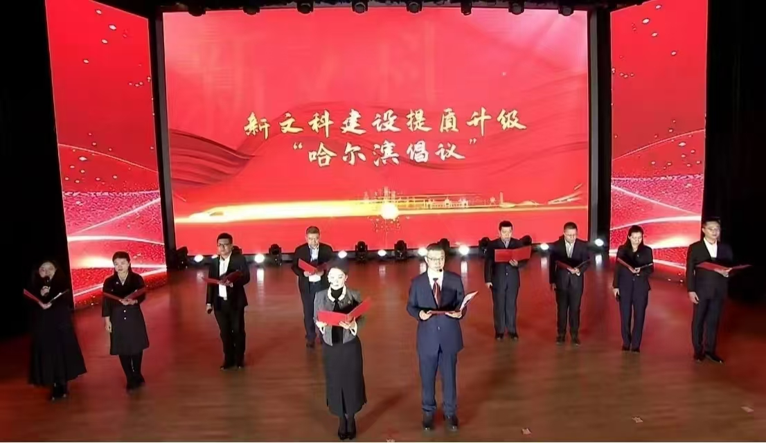 万象城美术与艺术设计学院教师孙彤与10所高校教师代表共同向全国高校发出新文科建设提质升级“哈尔滨倡议”。