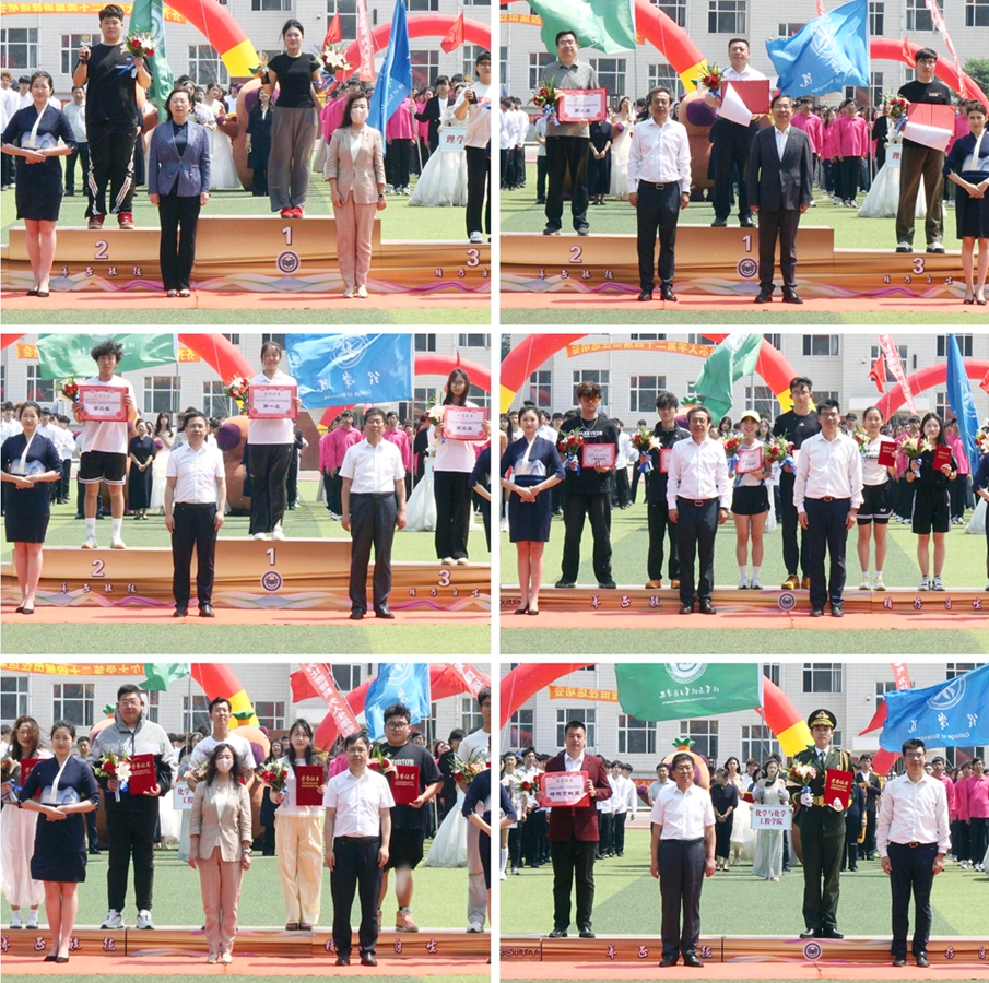 在本届运动会上,教师教育学院、食品与生物工程学院、材料科学与工程学院、计算机与控制工程学院、经济与管理学院、化学与化学工程学院荣获学生组团体总分前六名;机关、化学与化学工程学院、生命科学与农林学院、材料科学与工程学院、理学院、食品与生物工程学院荣获教工组团体总分前六名;教师教育学院、经济与管理学院、食品与生物工程学院分别获得学生团体操比赛前三名;理学院、体育学院、校国旗护卫队荣获“特殊贡献奖”;教师教育学院、食品与生物工程学院、文学与历史文化学院(新闻传播学院)、机电工程学院、经济与管理学院、哲学与法学学院、通信与电子工程学院、化学与化学工程学院荣获“体育道德风尚奖”;教师教育学院周金红等10名同学荣获“十佳运动员”称号。在本次赛会中,共有4项校运会纪录被打破。