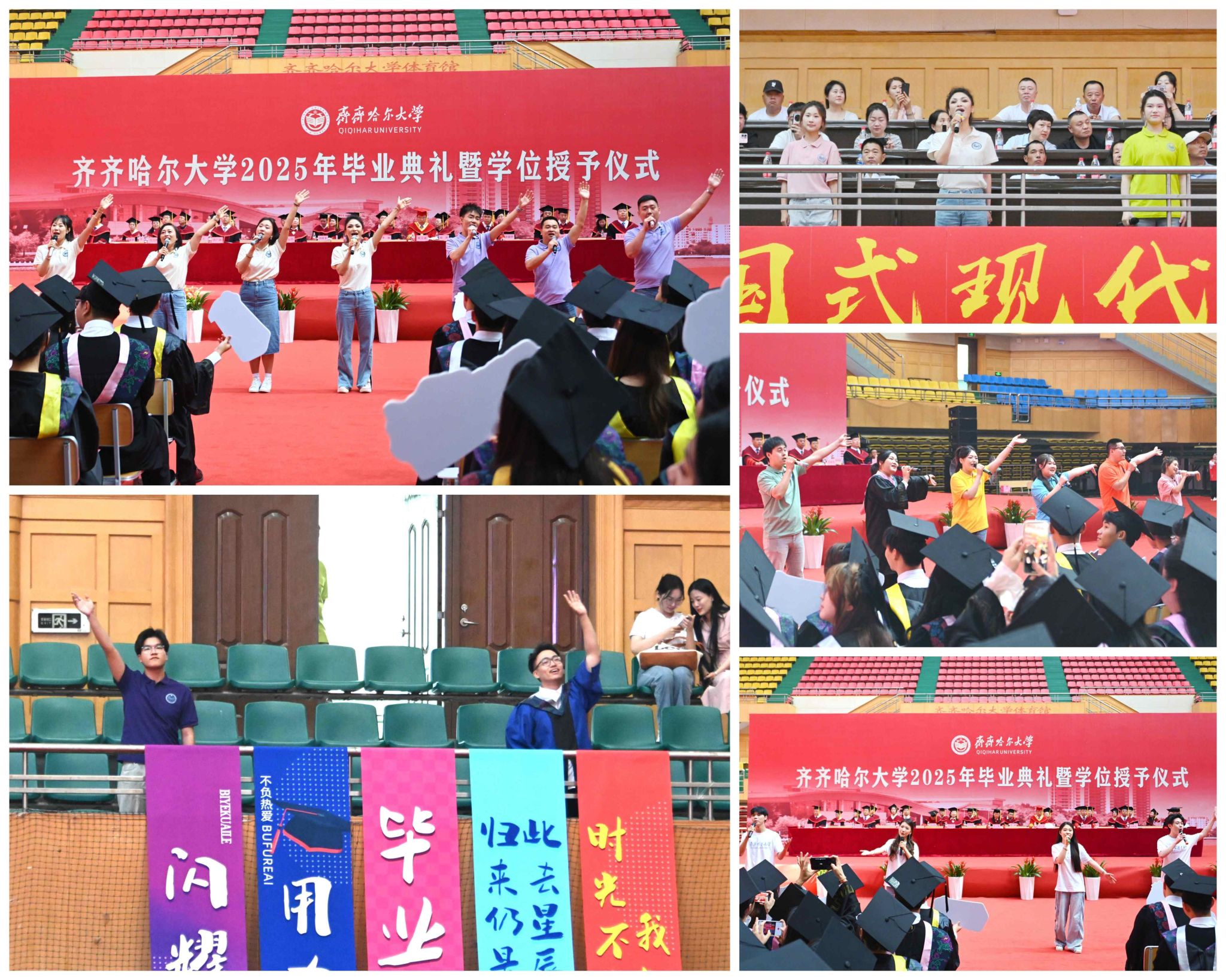 典礼最后,在场的毕业生们随着《今生离不开你》的歌声旋律,对母校作最深情的告白。时代的考题总在更新,青春的答案从未褪色。愿2025届毕业生传承“养正毓德精存自生”的齐大校训精神,从校园的温暖港湾驶向广阔的人生海洋,永远意气风发、步履不停,书写属于新时代的青春答卷!