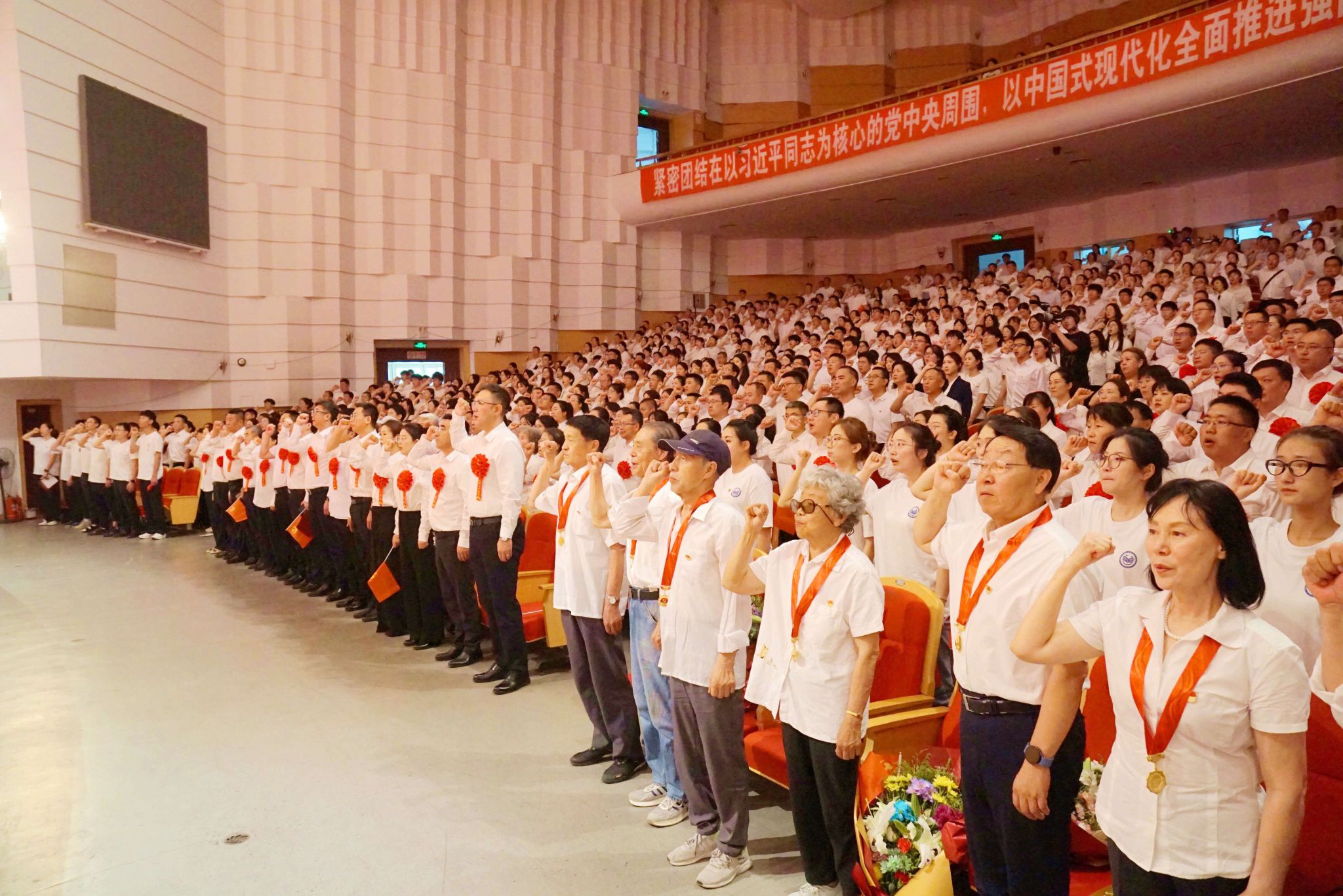 学校“光荣在党50年”纪念章获得者代表,受表彰的优秀共产党员、优秀党务工作者和先进基层党组织代表,各基层党委、直属党支部负责人,各党支部书记,各学院师生党员代表参加大会。