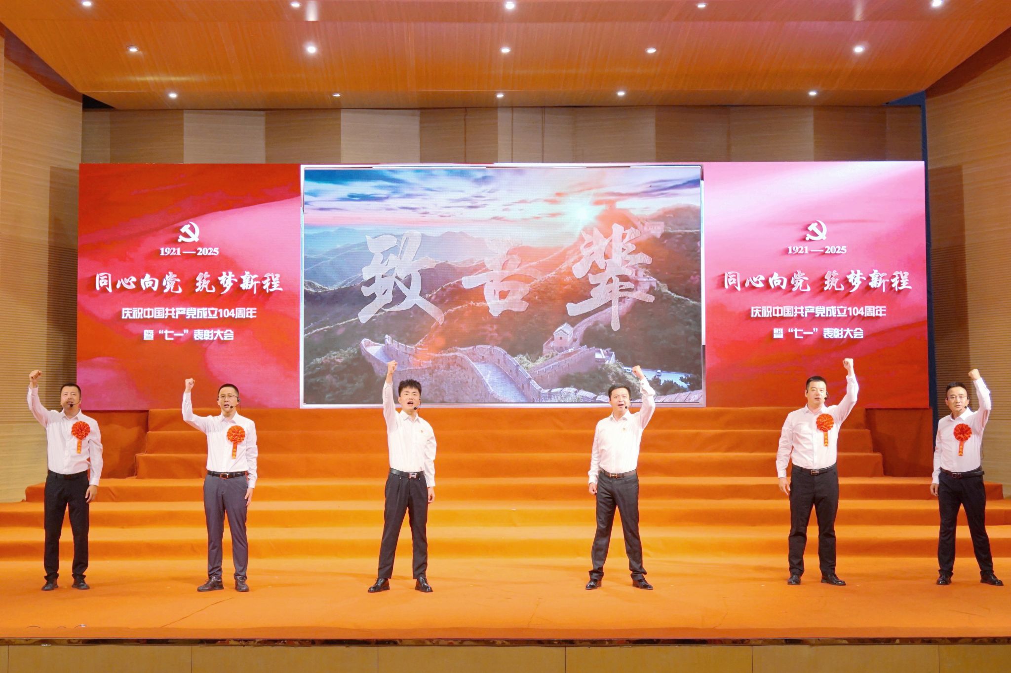 大会举行新党员入党宣誓、老党员重温入党誓词仪式。在丁宏的领誓下,新党员面向党旗庄严宣誓,老党员重温入党誓词,铿锵有力的誓言响彻会场。