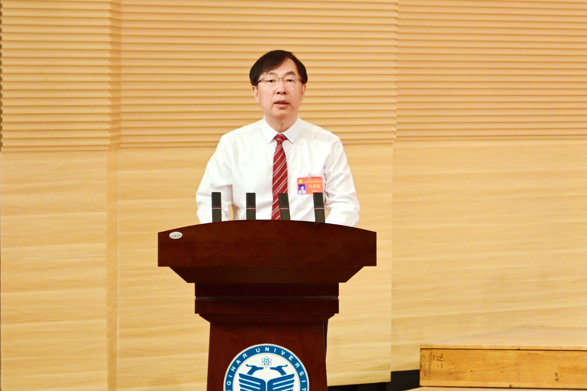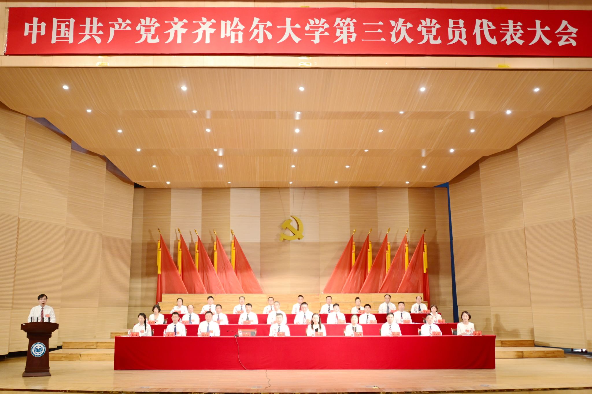 齐齐哈尔市委常委、组织部部长李晨华出席开幕会。丁宏、郝文斌、齐宏伟、张文治、陆占权、徐广洲、马文辉、王志刚、杜海军等大会主席团成员在主席台就座。学校不是代表的现职校领导、校长助理、各民主党派主要负责人、无党派人士和现职上一届“两委”委员代表列席了大会。