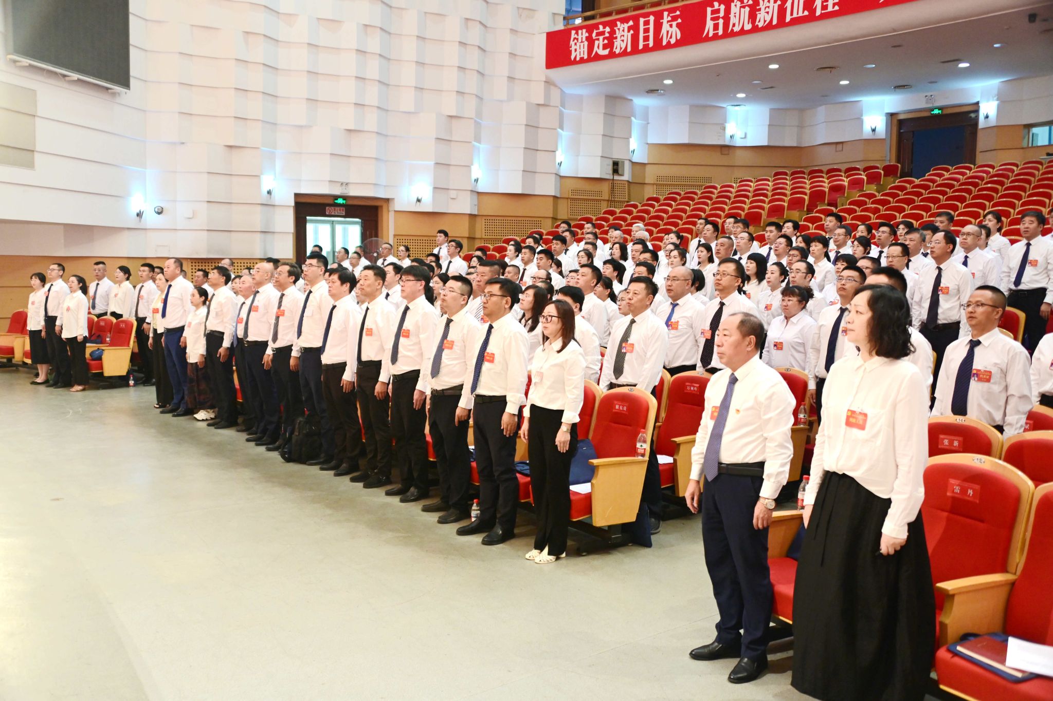 上午9时,大会在雄壮激昂的国歌声中开幕。郝文斌同志主持开幕会。