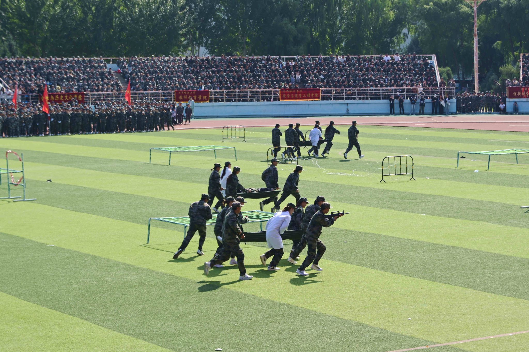 战术综合演练将整个大会推向高潮。同学们以娴熟的战术动作和精准的协同配合,模拟战场环境,生动演绎了进攻、防御、掩护与救援等实战课目,将爱国情怀具象为可感可知的责任与使命,极大地增强了集体向心力和凝聚力。