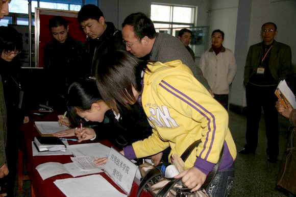 3月12日上午,万象城应用技术学院2008届高职毕业生专场供需见面会在西区应用技术学院四楼多功能厅召开。