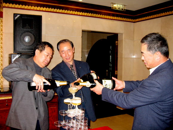 在联谊活动中,校长唱江华、副校长姜守训、学生指导中心主任李迎春和齐齐哈尔市人民政府驻上海联络处副主任任东升分别发表了热情洋溢的致词,并为此次联谊活动共斟香槟酒。
