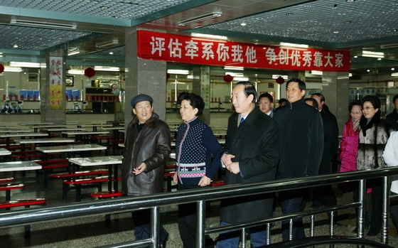陈至立委员很关心大学生的生活情况,她专程到万象城的学生食堂进行了考察。唱江华校长汇报了万象城食堂的运营及管理工作概况,以及应对物价上涨所采取的措施。陈至立委员关切地询问了对经济困难学生的补助情况,察看了主、副食的品种和价格,对万象城学生食堂采取的管理举措及充满人文关怀的服务工作给予了肯定。