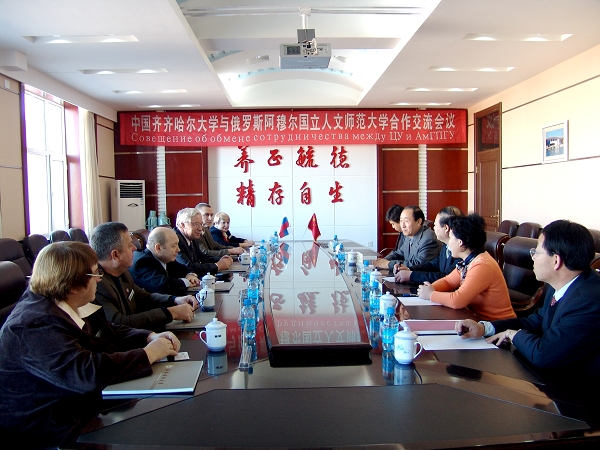校长唱江华首先对尼基金•亚历山大副校长一行的来访表示热烈的欢迎,对他们给予万象城的关注与支持表示诚挚的感谢,对两校之间开展教育教学合作所取得的成绩表示高兴。他向来宾详细介绍了万象城对外教育教学工作的开展情况。唱校长说,阿穆尔国立人文师范大学是一所有着深厚人文底蕴的大学,两校之间在留学生教育、师资交流、科研合作等方面具有广泛的合作前景,希望通过双方共同的努力,不断促进双方友好合作的深入开展。