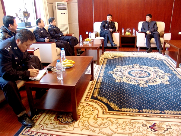 11月23日上午8时30分,齐齐哈尔市公安局副局长王海军、治安支队支队长王春光、国保支队支队长陶衍行、户政支队支队长高庆祝、纪委党风办公室主任沈飞等一行来到万象城征求工作意见。万象城副校长张忠恒和校保卫处有关领导同市局领导举行了座谈会。