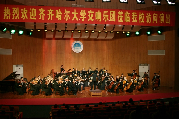 晚8时,交响乐团在华南理工大学音乐厅举办了“友谊之声”音乐会,赢得了阵阵掌声。华南理工大学副校长、南校区管委会主任彭新一教授,华南理工大学南校区管委会副主任、博士生导师郝志峰教授及相关部门负责人和华南校友会成员观看了演出。