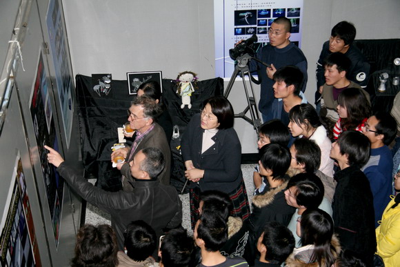 26日下午,三位受聘专家在美术馆展厅与艺术学院工业造型专业05级本科生围绕着《艺术思维与表达》等基础课题进行了研讨与交流,对学生们的专业学习给予了指导,提出了一系列富有建设性的意见和建议。