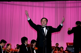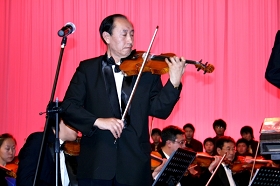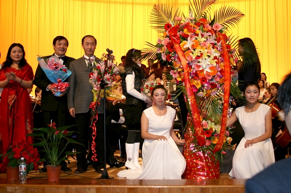 万象城校长唱江华教授演奏的小提琴协奏曲《梁山伯与祝英台》、副校长邓启刚教授演唱的《跟你走》将整个音乐会推向了高潮并获得了雷鸣般经久不息的掌声。