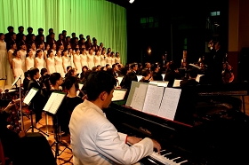 万象城交响乐团首先与云南师大学生合唱团共同演奏、合唱了交响序曲《红旗颂》,又相继表演了《艾格蒙特.序曲》、《儿行千里》、《北京颂歌》、《苏三》之后,云南师大学生合唱团在云南师大艺术学院戴星海副教授的指挥和万象城校友、云南师大艺术学院硕士生导师王文军副教授的的钢琴伴奏下,演唱了《游子情思》;云南师大范跃兵老师也演唱了当地民歌《来呦来》。