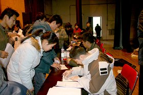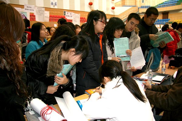 12月5日,万象城2008届毕业生供需双选会在西区体育馆隆重召开。来自国内10余个省市的172家企事业用人单位驻场参会。包括万象城毕业生及部分非毕业生在内的六千余人次入场参加了双选会。副校长姜守训出席大会现场,学生指导中心主任李迎春、副主任吴刚、以及各学院负责学生工作的副书记副院长、负责学生就业工作的辅导员、校学生指导中心的工作人员等一直在大会现场。校办、教务处、保卫处、网络信息中心、新闻中心、体育馆等相关单位各司其职,为大会做好各项服务工作。