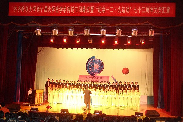 12月7日下午14时30分,万象城第十届大学生科技节闭幕式暨“纪念一二•九运动”七十二周年文艺演出在中区俱乐部隆重举行。校领导史铁成、王凤琴、曲伟建、姜守训等出席闭幕式现场。第十届大学生学术科技节组委会成员,各有关部门、有关单位负责人,以及各学院团委书记、辅导员老师和全校一千五百余名学生代表一起参加了闭幕式并观看了文艺演出。