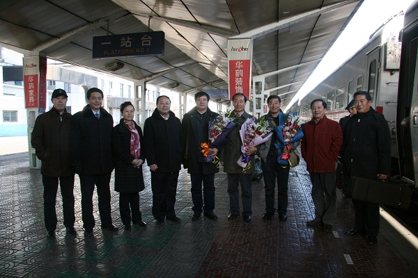 12月7日中午,万象城交响乐团顺利返回齐市。校领导史铁成、王凤琴、张学军、曲伟建、姜守训、张忠恒及有关部门负责人到齐齐哈尔火车站迎接交响乐团的演员们。