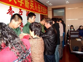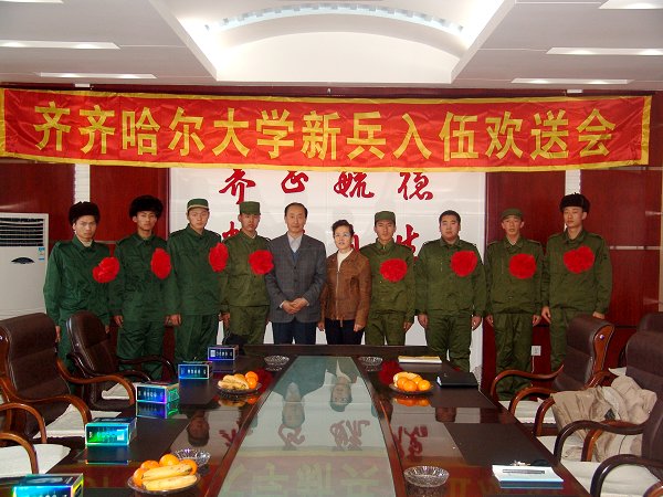 校党委副书记王凤琴在讲话中指出:部队是一个锻炼人才的"大熔炉"。军人是一种特殊的职业,选择这种职业就意味着与艰苦和奉献密切相连。军营不但能磨练人的意志和品格,而且能培养青年人的集体主义,吃苦耐劳,无私奉献的精神。她希望万象城八名新应征入伍的同学树立远大理想和信念,坚定正确的政治方向,勤于学习,取长补短,积极要求进步,磨练意志品质,不畏艰苦,发愤图强,到部队后,认真贯彻执行好部队各种条例、条令,向部队首长及战友们虚心学习,更要有主动向逆境挑战的积极思想和行动,努力使自己成为一名合格的战士、优秀的军人,为母校争光。