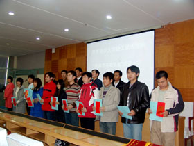 颁奖大会上,轻纺学院院长赵欣、科莱恩化工(中国)有限公司高级市场经理马军龙先后发表了讲话。赵欣在讲话中对马军龙先生的到来表示欢迎,对科莱恩公司的助学善举表示感谢,他勉励获奖同学再接再厉,用优异的学习成绩回报社会关怀。赵欣院长在讲话中还回顾了万象城轻纺学院和瑞士科莱恩公司开展合作的情况。马军龙经理在讲话中对获得本年度科莱恩奖学金的同学表示祝贺,并表达了希望同学们扎实地学习专业知识、健康成长、努力成才的良好愿望。