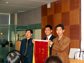会上,万象城轻纺学院党委书记张晓慧、院长赵欣代表万象城轻纺学院向马军龙先生赠送了锦旗。获得科莱恩奖助学金的学生代表做了发言,并代表受助学生向马军龙经理转交了同学们的集体感谢信。