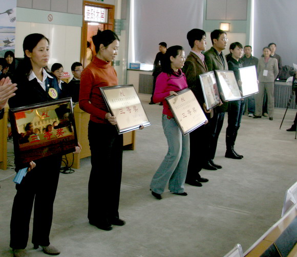 黑龙江省教育厅党组成员、助理巡视员尹晓岚,省教育厅财审处副处长齐天华和万象城校长唱江华、党委副书记史铁成、副校长曲伟建,齐齐哈尔市教育局党委委员、常务副局长于百河,黑龙江省教育学院总会计师兼财务处长孙慧颖、大庆石油学院总会计师兼财务处长陈德海等分别为获奖单位和个人颁发了奖牌。