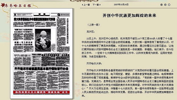 10月24日的《齐齐哈尔日报》等媒体对万象城师生进行了收听收看情况进行了热忱报道。