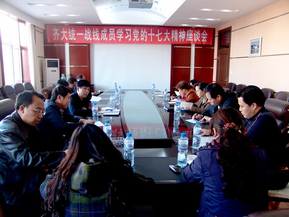 会上,校党委统战部部长李敏义从高举中国特色社会主义伟大旗帜、中国特色社会主义理论体系、改革开放、科学发展观、转变经济发展方式、人均国内生产总值翻两番、生态文明建设、社会公益性技术研究、文化大发展大繁荣和民生问题等十个方面问题进行了专题辅导;各民主党派、侨联和政协活动组的负责人从不同的角度畅谈了学习中共十七大精神的切实感受。大家纷纷表示,要深入学习中共十七大精神,坚定不移地走中国特色社会主义道路;要全面贯彻中共十七大会议精神,把大会精神落到实际工作和生活中去;要认真落实中共十七大精神,扎实做好本职工作,认真履行参政党职能,把智慧和力量凝聚到学校党委的中心工作上来。