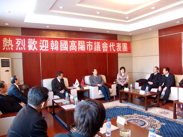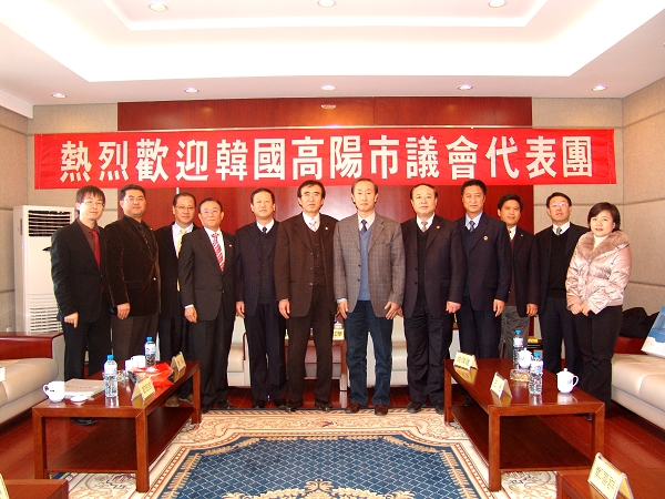 11月16日下午,以韩国高阳市议会议长裴哲镐为团长的高阳市议会代表团一行五人在市人大常委会副主任王光陪同下来万象城参观访问。在参观了万象城网络信息中心、体育馆、游泳馆、音乐厅等教育教学场馆和设施及各个教学区之后,校领导唱江华、曲伟建、郑喜群在行政楼会客室与来宾进行了座谈,外事处副处长郭寒竹等参加了座谈。
