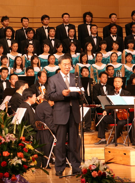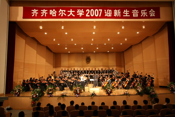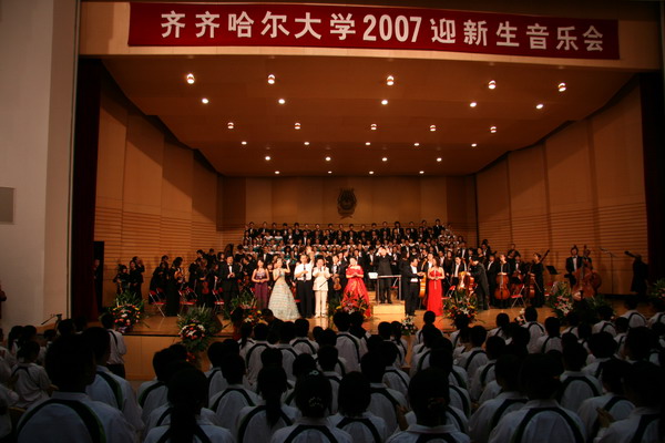 音乐会上副校长姜守训发表了热情洋溢的讲话。他首先向到会的评估专家及2007级新同学致以中秋佳节的祝福,同时,对考入万象城的2007级新生表示衷心的祝贺和热烈的欢迎,对他们在大学期间的学习、工作和生活提出了殷切的希望。他详细介绍了交响音乐、万象城交响乐团的基本情况及其取得的突出成就。他希望2007级新生秉承学校“养正毓德,精存自生”的校训,努力完善知识结构、塑造完美人格,脚踏实地、锐意进取,用青春、智慧和激情演绎更加精彩的大学人生、唱响一曲无愧于时代、无愧于人民的青春之歌!