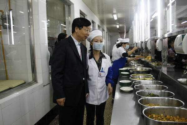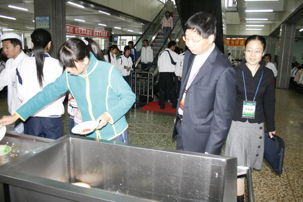 7时,王立新教授来到东区二食堂,考察了餐饮服务设施,询问了学生的饮食情况,并与就餐学生进行了交流。
