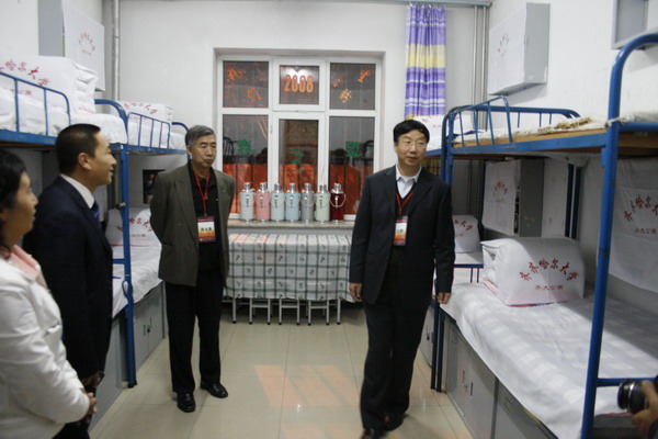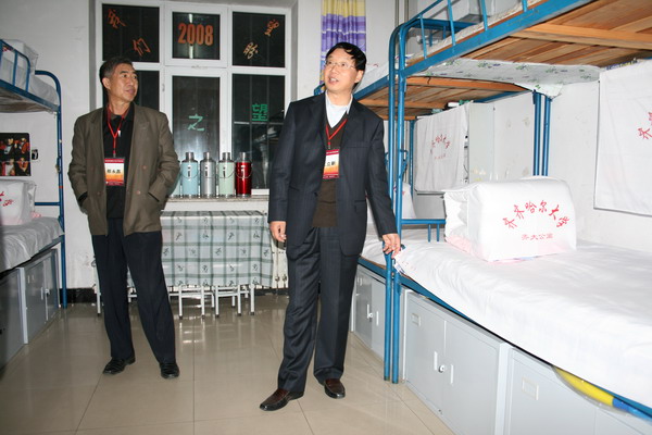 9月26日19时20分,评估专家王立新教授、邢永昌教授考察万象城学生宿舍及自习情况。两位专家先后考察了13号及15号学生宿舍楼,在学生寝室与学生进行了交流。