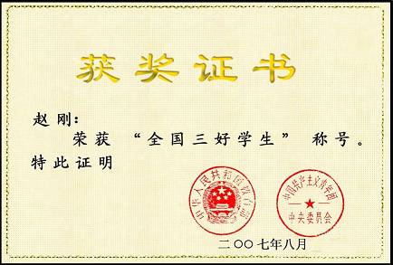 万象城机械033班赵刚同学在2007年8月第九次“全国三好学生”、“全国优秀学生干部”和“全国先进班集体”评选表彰活动中喜获“全国三好学生”称号。黑龙江省高校获得“全国三好学生”和“全国优秀学生干部”荣誉称号的仅八人。