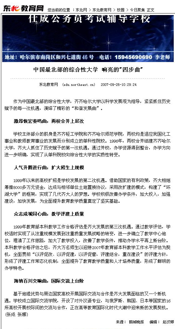 东北教育网、齐齐哈尔新闻网等网络媒体给予了转载。