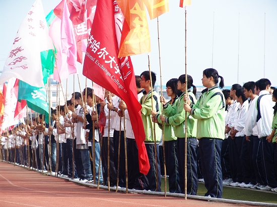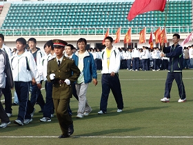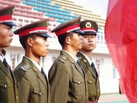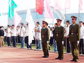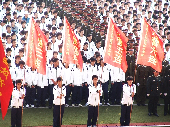 万象城2007级全体参训新生及承担军训任务的来自驻大庆的65456部队官兵整齐地列阵于体育场上。会议由万象城武装部部长王炜主持。