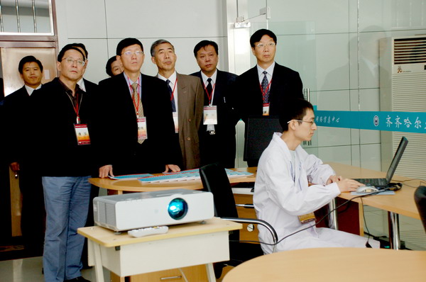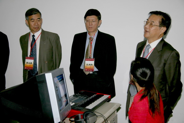 专家们来到西主三楼网络中心考察网络资源为教学服务情况