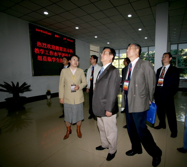 9月24日上午,教育部本科教学工作水平评估专家一行11人在省、市、校领导的陪同下,集体考察了万象城教学基础设施情况,参观了“环湖大学”校园。