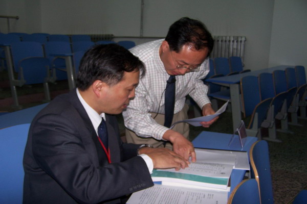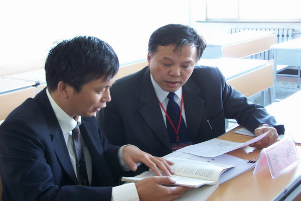 下午3:00,听完民诉法课后,章跃教授着来到11教的202教室,经济贸易系教授田爱国和财管062、063、064班84名同学起立鼓掌致意,欢迎专家的到来。章跃教授首先与田爱国老师进行了简短交流,并查阅了《统计学》课程的教材、教学大纲、授课计划和教案等教学资料,然后与84名同学一起听了田爱国老师讲授的《统计学》课程。