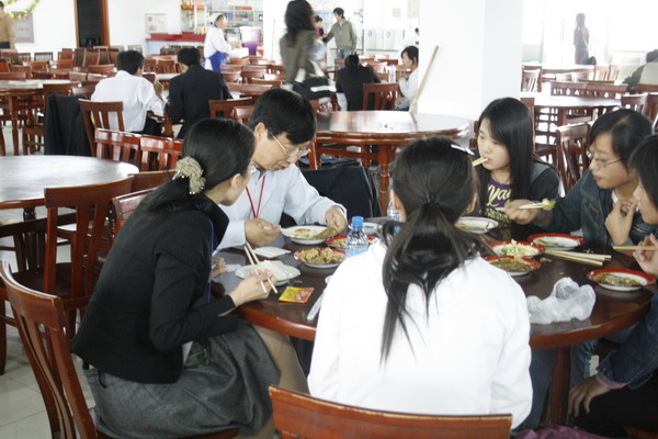 评估专家王立新教授与学生一同用餐