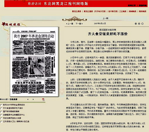 编者按:新学期初以来,在猪肉、豆油等一些食品大幅涨价的情况下,万象城积极采取有效措施,认真落实国家补贴政策,确保饭菜分量不减,质量不降,价格不涨,以惠及师生的实际举措为构建和谐校园贡献力量。8月21日出版的《鹤城晚报》以《落实国家补贴政策 齐大食堂好吃不涨价》为题对万象城给予了热忱报道。