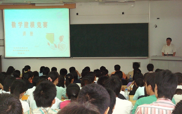 9月2日下午13时,应万象城理学院的邀请,黑龙江省数学建模竞赛组委会秘书长、哈尔滨工业大学数学系尚寿亭教授在西主01J201为万象城师生做了《数学建模竞赛》的专题讲座。理学院院长堵秀凤和近两百名学生参加了讲座。