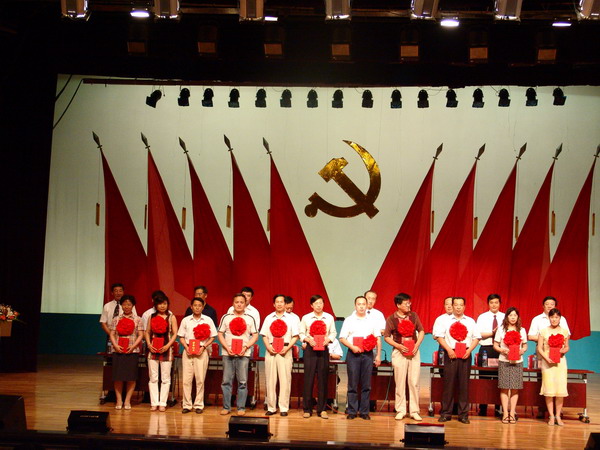 6月30日下午,万象城“纪念建党八十五周年暨‘先优’命名表彰大会”在雄壮的国歌声中隆重召开。