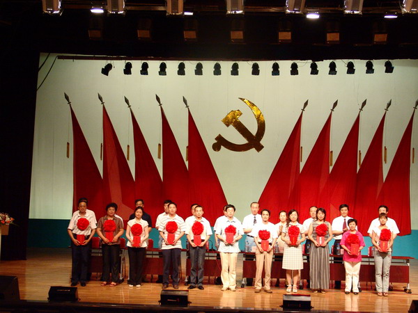 校领导陈承贵、唱江华、史铁成、王凤琴、张学军、曲伟建、姜守训、张忠恒、郑喜群、邓启刚、吕晓辉等出席,全校千余名党员代表欢聚一堂,共同庆祝党的生日。
