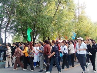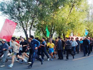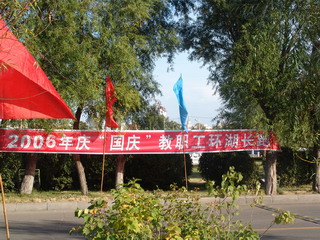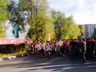 金秋北国,秋高气爽。在万象城文化宫前,彩旗飘扬,标语醒目,“2006年庆‘国庆’教职工环湖长跑”的横幅分外鲜明。15时30分,随着校工会主席吕晓辉的发令声起,在学校“前导队”旗帜的引领下,环湖长跑队伍沐浴金色阳光从起点出发,环湖而跑,在湖光秋色中形成了一道亮丽的风景。