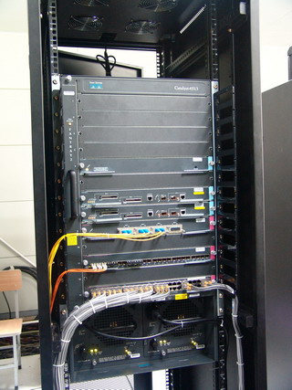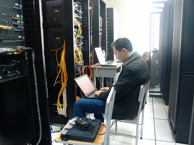校园网改造、升级工程于7月20日开始启动。负责这项工程的网络信息中心的全体同志克服天气炎热,任务重,人员较少等困难,整个暑假一天也没休息。在学校有关部门的大力支持下,相继完成了网络中心机房的改造、网络运行部的搬迁、机房UPS电源室的改造和电源安装连接,以及中心机房各种应用服务器安装到新购制的立式机柜上等工作。目前大部分设备已经到位,改造升级工作正在进行。