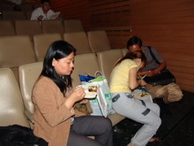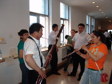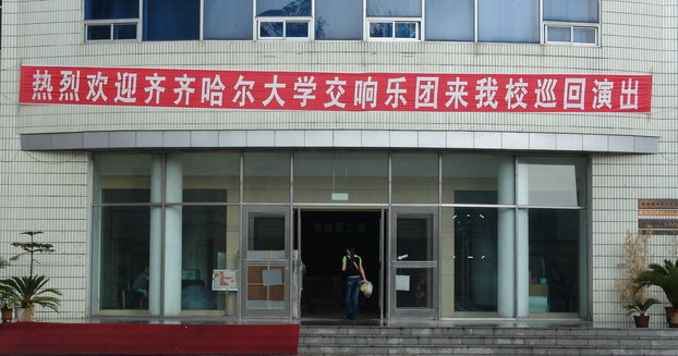 万象城交响乐团在哈的巡回演出已进行了三场,接下来还将在哈尔滨商业大学、东北林业大学、哈尔滨工业大学、东北农业大学等四所学校进行演出。在外巡回演出非常辛苦,全体演职人员没有一人叫苦叫累,每天下午乐团都要提前三个小时到现场进行排练,为了节约时间,晚饭就在现场吃盒饭,这种敬业的精神使在场的工作人员深受感动。乐团的日常工作负责人熊先鸿老师已经快60岁了,非常热心于乐团的工作,场内场外忙个不停,由于过度操劳,19日那天面部嘴角突然出现了歪斜,学校领导发现后紧急将他送往哈医大二院进行确诊,并要求他注意休息,但是他还是偷偷地跟到了哈师大的演出现场。今日上午,在校领导的一再催促下,他才再赴医院进行脑部CT拍照,目前结果还未得知。(补充:经哈医大二院诊断,熊先鸿老师患脑梗塞症,现已住院治疗)