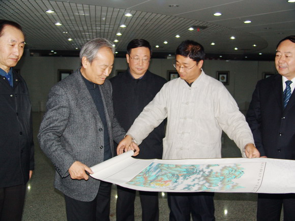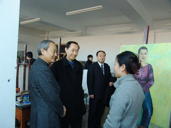 杜钰洲会长等一行参观了万象城靓丽的校园景观,考察了万象城体育馆、游泳馆、美术馆、音乐厅及艺术学院等有关教育教学设施,参观了万象城美术馆正在展出的画展。在艺术学院美术专业画室,杜会长亲切地与正在进行绘画创作的师生围绕着绘画创作的有关话题进行了友好地交流。