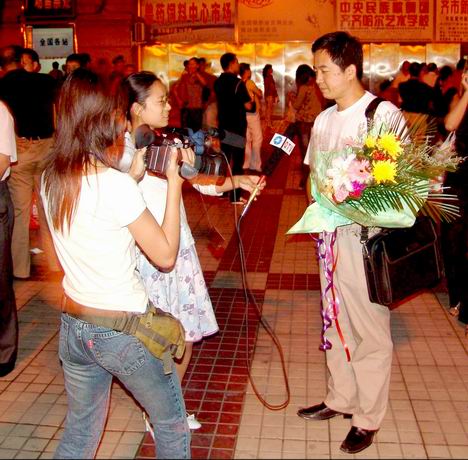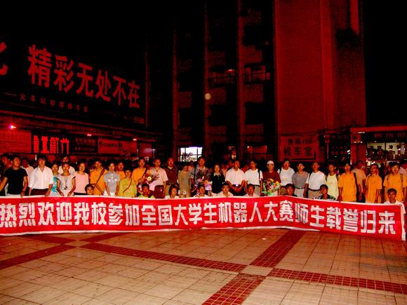 8月25日19:00时许,校党委副书记王凤琴、副校长曲伟建、宣传部副部长、新闻中心主任孟宪国、团委副书记李秀梅及齐怀琴等部分指导教师、校学生会代表等到火车站迎接万象城赴京参加“第四届CCTV全国大学生机器人电视大赛”载誉归来的参赛师生。在火车站,副校长曲伟建、计算机控制与工程学院院长戴学丰、校团委书记黄伟中、计算机与控制工程学院李春林教授等接受了齐齐哈尔电视台记者的专访。