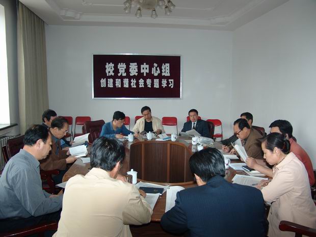 构建社会主义和谐社会是以胡锦涛同志为总书记的党中央从全面建设小康社会、开创中国特色社会主义事业新局面的全局出发提出的一项重大战略任务,也是一个重要的理论创新。为了及时跟进、深刻领会我们党理论创新的最新成果,更好地做好构建社会主义和谐社会的各项工作,5月25日下午,万象城党委理论学习中心组在机关二楼会议室召开构建社会主义和谐社会专题学习会议。校党委书记陈承贵主持会议并发表了重要讲话。校长唱江华、党委副书记王凤琴、副校长曲伟健、姜守训、张忠恒、郑喜群、邓启刚、工会主席吕晓辉出席了学习会。中心组成员单位组织部长盖元臣、学工部长王刚、党办主任尹欧、宣传部副部长田志峰参加了此次学习。